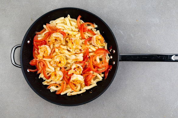 Du liebst es, wenn Genuss und schnelle Küche kein Widerspruch sind? Das verstehen wir gut und haben hier das perfekte Abendessen für dich und deine Lieben: eine feine italienische Nudelpfanne mit saftigen Garnelen, die mit einer leichten, zitronigen Sauce mit Peperoni und Petersilie alle Kriterien aufs Köstlichste erfüllt!