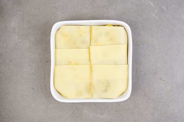 Den Auflauf mit dem Käse bedecken und 20–25Min. im Ofen backen, bis der Käse geschmolzen ist und die Kartoffeln gar sind.