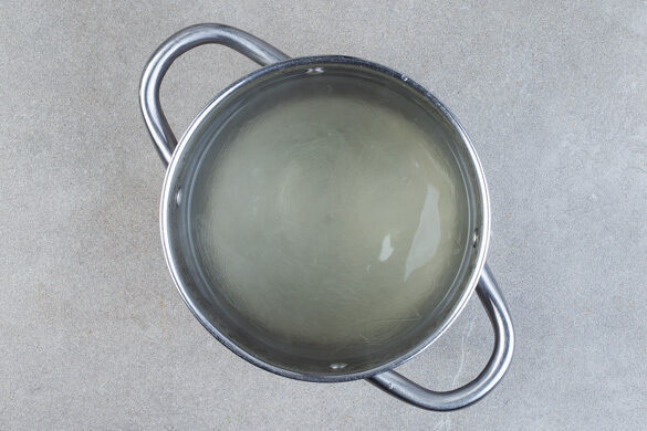 In einem kleinen Topf ausreichend gesalzenes Wasser für die Nudeln aufkochen. Die Nudeln in das kochende Wasser geben, den Topf vom Herd nehmen und die Nudeln 3–5Min. gar ziehen lassen. In ein Sieb abgießen, kalt abschrecken und abtropfen lassen. Tipp: Um die Weiterverarbeitung zu erleichtern, ggf. die Nudeln mit einer sauberen Schere 1–2 Mal durchschneiden.