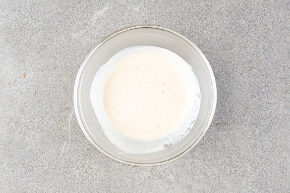 2 Prisen Paprikapulver mit 2EL Mayonnaise, 1EL Pflanzenöl, 1EL hellem Essig, 1EL Wasser und je 1 Prise Salz und Pfeffer zu einem Dressing verrühren. Ggf. mit mehr Salz und Pfeffer abschmecken.
