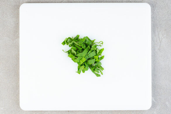 Die Pasta in das kochende Wasser geben und in 6–8Min. bissfest kochen. In ein Sieb abgießen, dabei ca. 300ml Pastawasser auffangen.