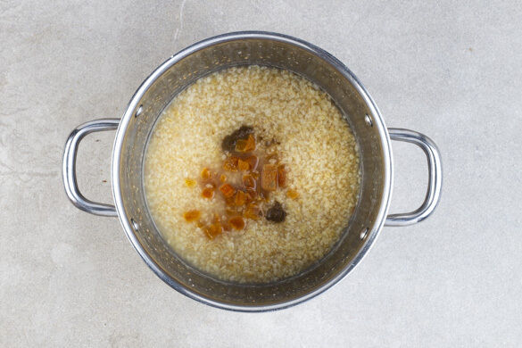 Den Bulgur und den Kreuzkümmel in das kochende Wasser rühren und abgedeckt bei niedriger Hitze 4–5Min. sanft köcheln lassen. Dann die Aprikosen hinzufügen und den Bulgur mit den Aprikosen weitere 4–5Min. köcheln, bis das Wasser aufgesaugt und der Bulgur gar ist. Noch ca. 5Min. ohne Hitzezufuhr ziehen lassen.