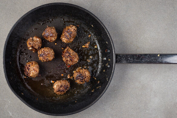 Die Pilze in der Pfanne mit 1EL Olivenöl bei sehr starker Hitze 5–6Min. anbraten, bis sie appetitlich gebräunt sind. Die Hackbällchen zurück in die Pfanne geben, die Sauce und ggf. etwas Pastawasser hinzufügen und alles bei mittlerer Hitze 1–2Min. erwärmen. Die Pasta mit der Sauce und den Hackbällchen vermengen, auf Teller verteilen und mit dem Joghurtdip servieren.