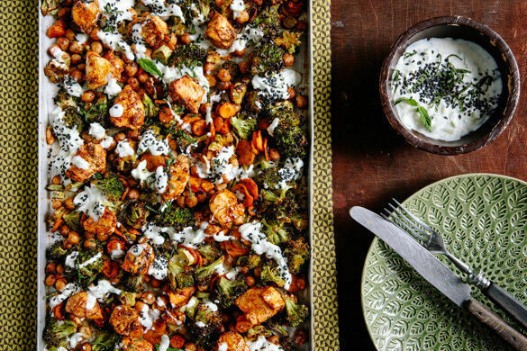 Das Fleisch trocken tupfen, in mundgerechte Stücke schneiden und in derselben Schüssel mit den Resten der Tikka-Masala-Paste vermengen. Das Gemüse nach 10Min. aus dem Ofen nehmen, wenden und das Fleisch dazugeben. Das Gemüse mit dem Fleisch weitere ca. 10Min. garen, bis das Fleisch gar ist.