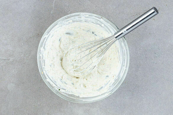 Den Ricotta in einer großen Schüssel mit dem restlichen Knoblauch, der 1/2 des Oregano, 2/3 der Nüsse, der Zitronenschale, 2EL Zitronensaft, dem Käse und 1 kräftigen Prise Salz glatt rühren, dann langsam 3EL Olivenöl unterrühren, bis alles gut untergemischt ist. Die Creme mit Salz und Pfeffer abschmecken.