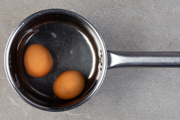 Die Eier vorsichtig in das kochende Wasser geben und in ca. 8Min. hart kochen. In ein Sieb abgießen, kalt abschrecken und schälen. Die Brötchen 6–8Min. im Ofen aufbacken.