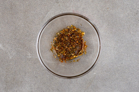 Einen möglichst weiten Topf oder einen Wok ca. 2cm hoch mit Pflanzenöl befüllen und bei starker Hitze erwärmen. 2EL warmes Pflanzenöl abschöpfen und mit der Gewürzmischung verrühren. Das Pflanzenöl dann weiter erhitzen, bis es sehr heiß ist (siehe Tipp).