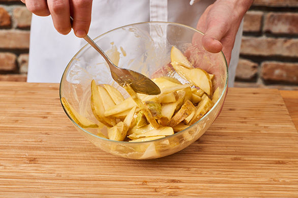 Weihnachten werden traditionell drei Gänge gekocht: Unsere Köchin Hannah hat für euch als ersten Gang einen leichten Salat mit Birnen und karamellisierten Walnüssen kreiert. Da der schon so gesund ist, kann man es beim Nachtisch ruhig mal etwas krachen lassen: Der Käsekuchen schmeckt wunderbar nach Lebkuchen und ist im Nu zubereitet.