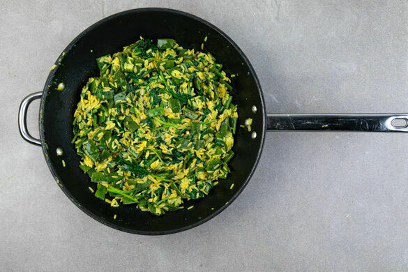 Kurkuma gehört zu den Ingwergewächsen und ist für seine schöne goldgelbe Farbe bekannt. Allerdings sollte man, um Flecken zu vermeiden, bei der Verwendung etwas Vorsicht walten lassen. Wir liefern die duftende Wurzel heute in Pulverform, damit die Zubereitung des sonnigen Reisgerichts mit Spiegelei und frischem Spinat locker flockig vonstattengeht. Knusprige Erdnüsse und ein süß-salziger Hoisindip schmecken dazu fantastisch!