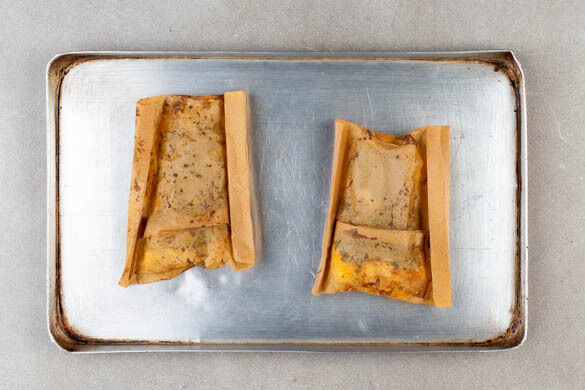 „En papillote“, ein Begriff aus der französischen Küche, beschreibt den Kochvorgang, bei dem Fleisch oder Fisch mit Gewürzen oder Kräutern in Pergamentpapier eingewickelt wird und in seinem eigenen Saft im Ofen gart. Das Ergebnis? Zartes Fleisch, dessen eigener Geschmack besonders hervorsticht. Heute verschmilzt feines Seehechtfilet mit fruchtiger Orange und pikantem Cajun-Gewürz zu ganz exquisiter Gaumenfreude. Très bon!