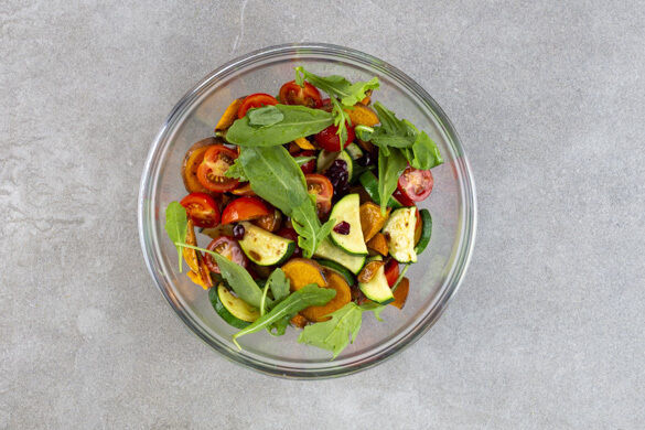 Dass ein Salat nicht nur als frische Beilage schmeckt, beweisen wir mit diesem Rezept. Dürfen wir vorstellen: Golden geröstete Süßkartoffel- und Zucchinischeiben schmiegen sich an würzige Rucolablättchen, die zwischen Kirschtomaten, krossem Speck und cremigem Fetakäse hervorblitzen. Die herzhafte Hauptspeise wird mit fruchtigen Cranberrys und edlen Pekannüssen getoppt und landet sicher auch auf deiner Low-Carb-Hitliste.