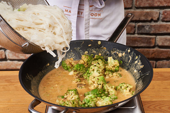 Romanesco ist nicht nur hübsch anzuschauen, er kann auch richtig was. Das mit dem Blumenkohl verwandte Gemüse enthält besonders viel Vitamin C und findet mit knackigen Cashewnüssen und cremiger Erdnusssauce die perfekten Partner, um dein heutiges Pad Thai zu etwas ganz Besonderem zu machen!