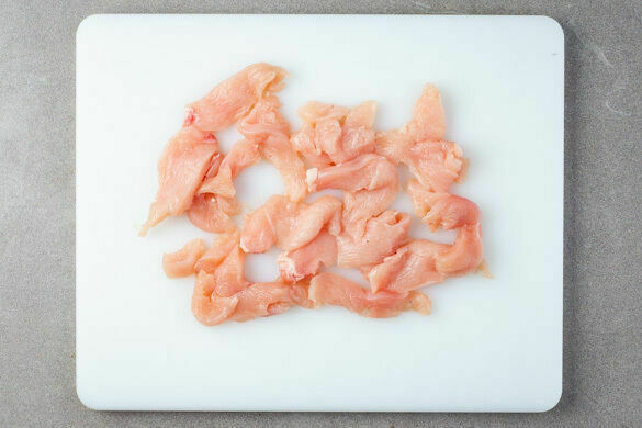 Das Fleisch trocken tupfen und in 0,5–1cm dünne Streifen schneiden.