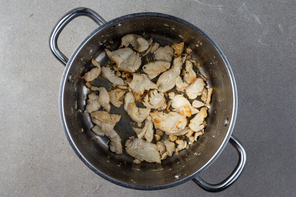 Das Fleisch in einem großen Topf mit 2EL Olivenöl bei mittlerer Hitze 2–3Min. anbraten. Herausnehmen und beiseitestellen.