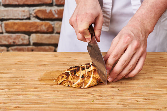 Das Hähnchenfilet mit der Hälfte des Mexican Allrounders und 2EL Olivenöl marinieren. Den Backofen auf 200°C Ober- und Unterhitze vorheizen.