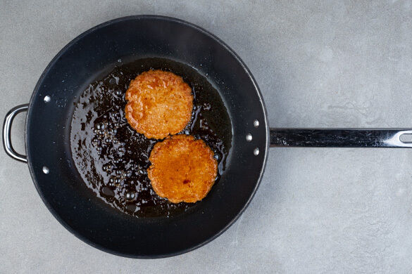 Die Pattys in einer mittelgroßen Pfanne mit 1EL Olivenöl bei mittlerer Hitze auf jeder Seite 1–2Min. goldbraun braten. Die Soja-Würzsauce dazugeben, 1–2Min. köcheln lassen und die Pattys in der Glasur wenden, sodass sie vollständig damit bedeckt sind.