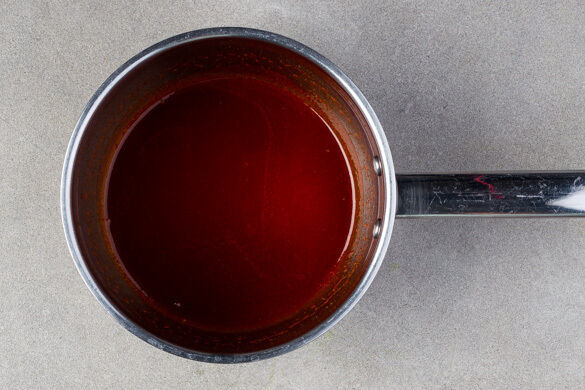 Die Chilipaste, den Knoblauch, 1EL Zitronensaft, 1TL Honig und 75ml Wasser in einem kleinen Topf zum Kochen bringen, dann bei niedriger Hitze 7–8Min. köcheln lassen, bis die Sauce eingedickt ist. Mit Salz und Pfeffer abschmecken.