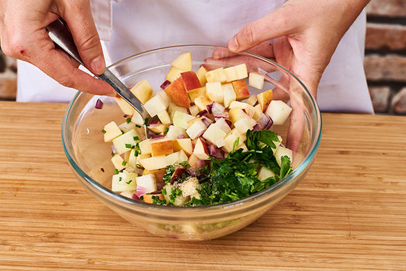 Wir haben den ultimativen Sommer-Vorfreude-Salat für euch vorbereitet: Wir kochen feine Kartöffelchen, die in der Kombination mit dem Senf-Honig-Dressing perfekt zu dem frischen Baby-Mangold passen. Oben drauf geben wir eine warme Kohlrabi-Apfel-Salsa. Was für ein Fest!