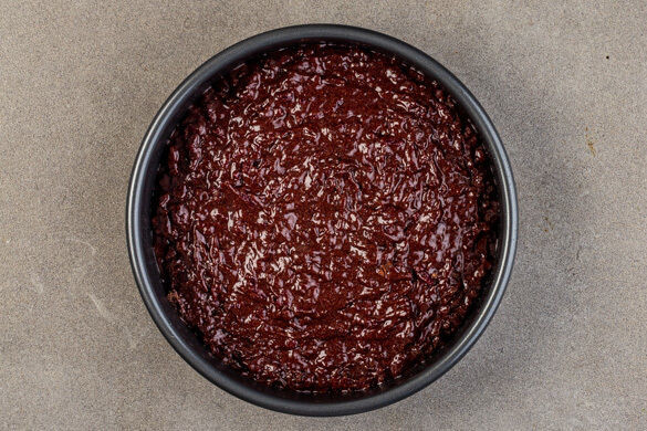 Den Teig in die Springform füllen und auf der mittleren Schiene im Ofen 40–45Min. backen. Tipp: Für eine Garprobe einen Zahnstocher in die Mitte des Kuchens stechen. Wenn kein Teig haften bleibt, ist der Kuchen durchgebacken.