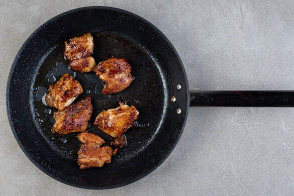 Das Fleisch in einer großen Pfanne mit 2EL Olivenöl bei mittlerer bis starker Hitze 4–5Min. rundum anbraten, bis es goldbraun und knusprig ist.