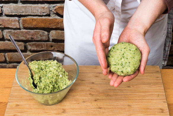 Den Fisch zuerst in dünne Scheiben schneiden und dann in grobe Würfel. Zusammen mit den Zwiebeln, Semmelbrösel, 1TL Zitronenabrieb, Petersilie und 3/4 des Schnittlauchs fein pürieren, mit Salz und Pfeffer würzen. Wenn die Masse zu weich ist, 1-2TL Weizenmehl hinzufügen, und zwei Burger formen.