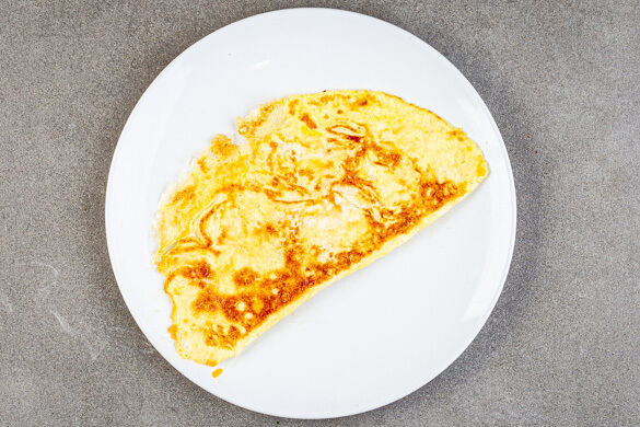 Die Eier mit 2EL Milch sowie je 1 Prise Salz und Pfeffer verquirlen, bis alles gut vermischt ist. 1EL Butter in der Pfanne bei mittlerer bis starker Hitze erwärmen. Die 1/2 der Eiermischung hineingießen, dabei die Pfanne leicht schwenken, um ein gleichmäßiges Omelett zu erhalten. Mit der 1/2 des Käses bestreuen und abgedeckt in 1–2Min. gar braten.