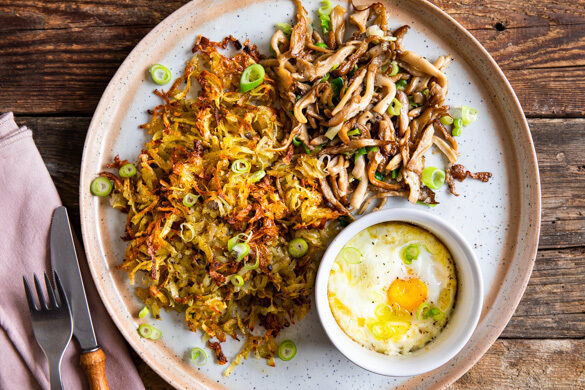Hand aufs Herz: Wie oft nimmst du dir richtig Zeit fürs Frühstück? Immerhin ist es die wichtigste Mahlzeit des Tages und sollte dementsprechend gefeiert werden! Zum Beispiel mit unseren leckeren „Œufs cocotte“ – mit Lauchzwiebeln und Trüffelöl verfeinerten Eiern im Glas. Dazu gebratene Austernpilze mit Knoblauch und im Ofen knusprig gebackene Rösti? Na, wie klingt das? Da tanzen nicht nur die Geschmacksknospen!