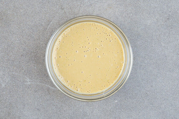 Die Limette halbieren und auspressen. Die Korianderblätter abzupfen. Die Korianderstiele mit der 1/2 der Cashews, der 1/2 der Sojasauce, 2EL Limettensaft, 4TL Pflanzenöl, 2EL Essig und 1–2TL Honig oder Zucker in einem hohen Gefäß pürieren. Nach Bedarf Wasser hinzufügen, bis das Dressing die Konsistenz von ungeschlagener Sahne hat. Mit Salz und Sojasauce abschmecken.
