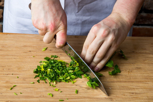 Sobald das Gemüse fertig ist, aus dem Ofen nehmen und die restlichen Kichererbsen untermischen. Mit 1EL Essig, 1EL Olivenöl und dem zweiten Päckchen Schawarma-Gewürz nach Geschmack marinieren. Wer mag, kann etwas Gewürz für die Garnitur des Hummus aufheben. Die Petersilie samt der Stiele fein hacken und über den Salat verteilen.