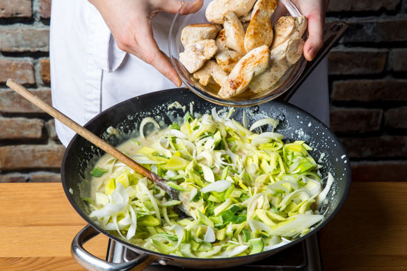 Das hört sich nicht nur lecker an, sondern ist auch richtig leckerschmecker: saftige Hühnermedaillons in einer herrlich cremigen Sauce mit Lauch, dazu knusprige Ofenkartoffeln. Wusstest du, dass Lauch bereits seit etwa 4000 Jahren kultiviert wird und voller Vitamin K steckt? Das sorgt unter anderem für starke Knochen. Das aromatische Zwiebelgemüse ist also ein echter Kraftbringer!