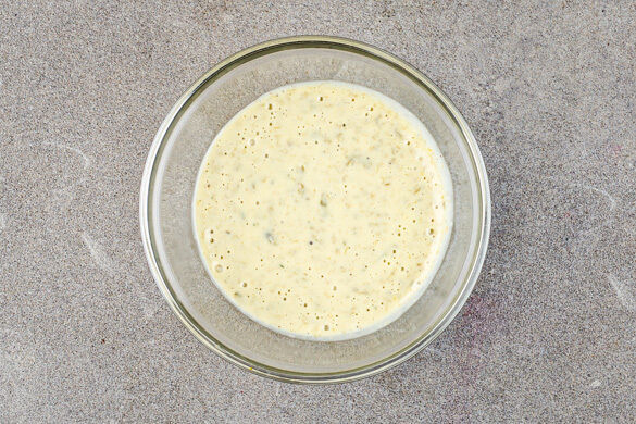 Die Kapern grob schneiden. Den Käse fein reiben und mit den Kapern, 1EL Mayonnaise, 2EL Olivenöl, 2EL Wasser, 1TL Essig und je 1 kräftigen Prise Salz und Pfeffer in einem hohen Gefäß mit einem Stabmixer fein pürieren. Ggf. löffelweise Wasser zugeben, bis die gewünschte Konsistenz erreicht ist.