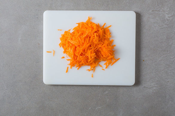 Die Karotten ggf. schälen und mit einer Küchenreibe grob raspeln.