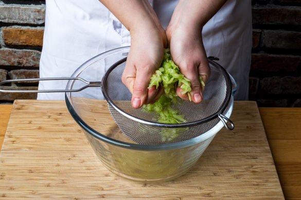 Die Gurke schälen, die Enden abschneiden und mit der groben Seite der Küchenreibe raspeln. In einer kleinen Schüssel mit 1TL Salz ca. 5Min. ziehen lassen, dann das überschüssige Wasser so gut es geht auswringen. Die Gurke mit dem Joghurt, restlichem Knoblauch und gehacktem Oregano mischen und mit Pfeffer abschmecken.