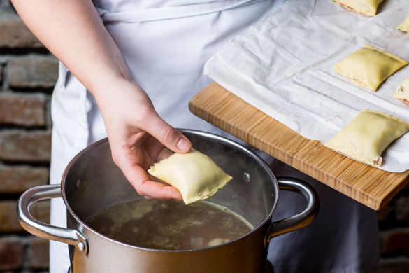 Unser Koch Matthias hat dir dieses traditionelle Maultaschen-Rezept aus seiner Heimat mitgebracht. Das ist nämlich das Lieblingsgericht der Familie und wir waren ebenso begeistert! Früher wurde diese dicken Fleisch-Nudeln vor allem am Donnerstag vor Ostern gegessen, aber inzwischen kommen sie das ganze Jahr auf den Tisch. Zu Recht, wie wir finden. Guten Appetit!