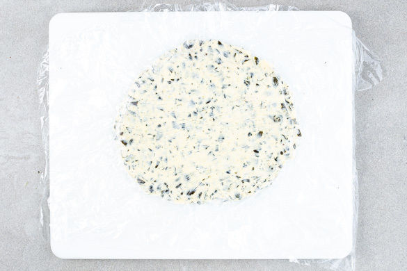 Die Kürbiskerne grob hacken, mit Salz und Pfeffer würzen und mit 2EL weicher Butter vermengen. Die 1/2 des Panko-Paniermehls untermengen. Die Kürbiskernbutter zwischen Frischhaltefolie ca. 0,5cm dick ausrollen, mit der Folie auf einen Teller legen und in den Kühlschrank stellen.