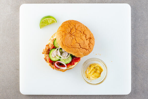 2EL Mayonnaise mit 1TL Currypulver und 2TL Wasser verrühren. Die Brötchen aufschneiden und mit etwas Currymayo bestreichen. Mit den Pattys, der Paprika, den Gurken, den Schalotten und dem Koriander belegen und mit Limettensaft beträufeln. Mit den Süßkartoffeln anrichten und mit der übrigen Currymayo und den Limettenspalten servieren.