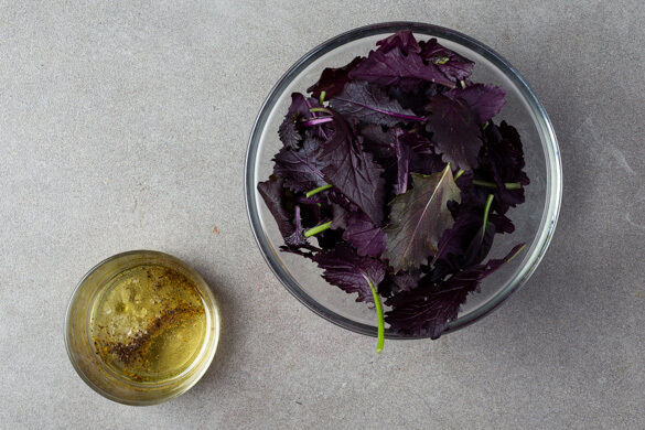 Die Kürbiskerne grob hacken. Die Lauchzwiebel in feine Ringe schneiden.