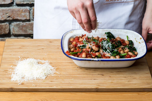 Diese rotbesprenkelte Bohne ist ein echter Eiweiß-Booster! Die Bohne kommt ursprünglich aus Südamerika, ist aber inzwischen auch in der italienischen Küche sehr beliebt. Zudem passt sie ganz hervorragend in diesen Auflauf mit frischem Spinat und Tomaten. Serviert wird das mit selbstgemachter Gremolata aus Petersilie, Knofi und Zitronensaft!