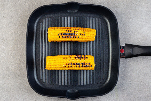 Das Päckchen auf dem Grill bei mittlerer bis starker Hitze 6–8Min. erwärmen, dabei gelegentlich wenden. Alternativ die Füllung mit 1EL Olivenöl in der Pfanne braten und anschließend würzen. Den Mais aus dem Topf nehmen, mit 1TL Olivenöl beträufeln und auf dem Grill oder in einer Grillpfanne bei mittlerer bis starker Hitze 6–8Min. garen, bis Röstspuren zu sehen sind. Regelmäßig wenden.