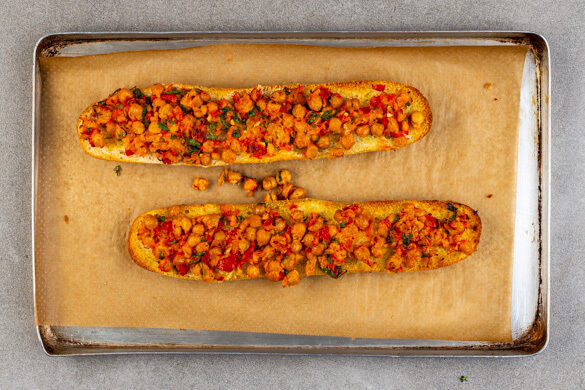 Wusstest du, dass man aus Ofengemüse ganz fabelhafte Suppen kochen kann? Durch das Vorbacken bekommt das Gemüse reichlich schmackhafte Röstaromen, die im Suppentopf super zur Geltung kommen. Wir reichen heute also eine leckere Röstgemüsesuppe aus Auberginen und Kirschtomaten – und als knusprige Beilage gibt es feine Crostini mit einer Paste aus Paprika, Kichererbsen und Petersilie. Guten Appetit!