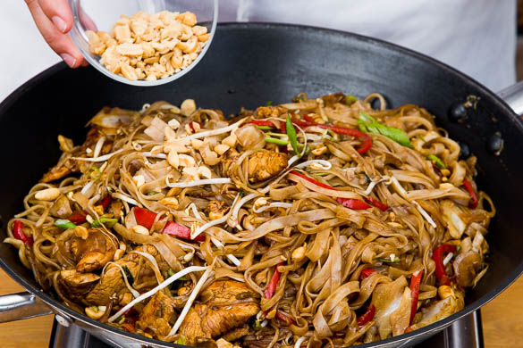 Freue dich über einen Street Food-Klassiker aus den fahrenden Küchen Thailands! Pad Thai ist ein traditionelles Nudelgericht mit Reisbandnudeln, Fischsauce, Tamarindenpaste, Bohnensprossen und Erdnüssen. Dieses Gericht wurde übrigens Mitte des 20. Jahrhunderts zum thailändischen Nationalgericht erklärt – wir holen schonmal die Stäbchen raus!