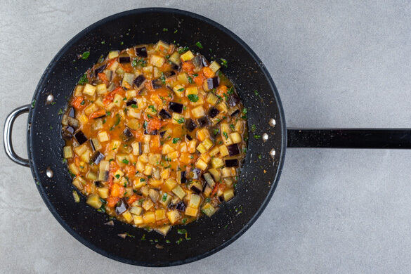 Den Tofu trocken tupfen, in 1–2cm große Würfel schneiden und in derselben Pfanne mit 1EL Pflanzenöl bei mittlerer bis starker Hitze 3–4Min. rundum goldbraun braten. Den Tofu herausnehmen, die Pilze in die Pfanne geben und ca. 5Min. braten, bis die Flüssigkeit größtenteils verdampft ist und die Pilze goldbraun sind.