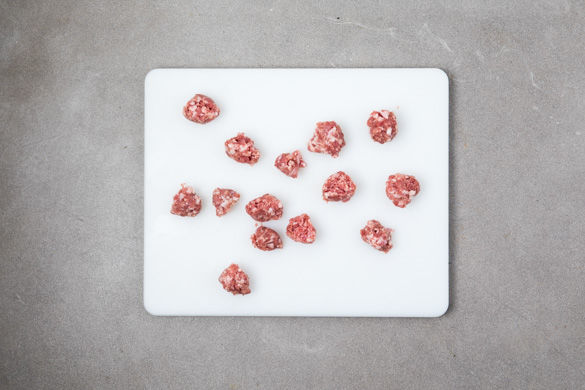 Die Salsiccia mit einem scharfen Messer von der Pelle befreien und in ca. 1cm dicke Scheiben schneiden.
