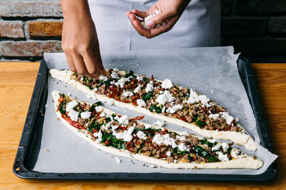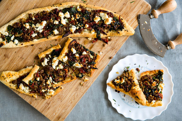 In der Türkei wie in Deutschland ist diese gefüllte und gebackene Teigtasche einer der beliebtesten Imbisse – zu Recht! Es ist nämlich einfach zuzubereiten, unglaublich lecker und macht so richtig satt. Pide gibt es mit Fleisch oder in vegetarischen Varianten. Dieses Pide à la Marley Spoon ist mit Hackfleisch, Spinat und Trakajakäse gefüllt.