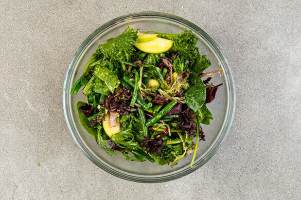 In deiner Kochbox steckt heute eine leckere Kombination aus deftigem Schweinegeschnetzeltem und einem leichten Salat, der mit grünen Bohnen und fruchtigen Apfelscheibchen glänzt. Eingelegte rote Zwiebeln und angeröstete Walnüsse setzen köstliche Akzente in diesem schnell zubereiteten Low Carb Schmaus. Guten Appetit!