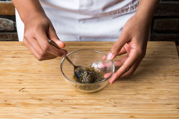 Wer einen Grill zu Verfügung hat, den Grill vorbereiten. Das Mexican-Allrounder-Gewürz mit 1EL Olivenöl sowie Salz und Pfeffer vermischen.
