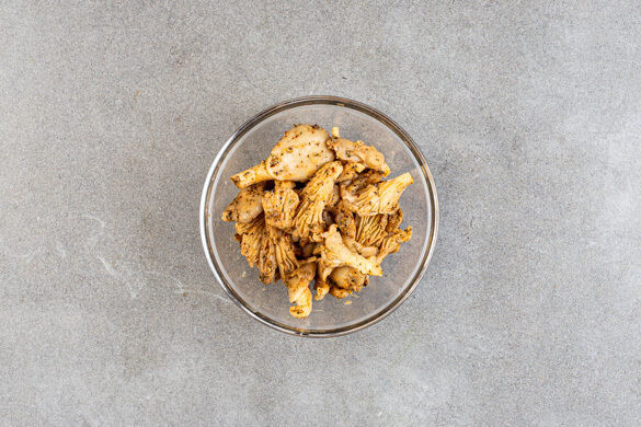 Eine mittelgroße Pfanne 0,5cm hoch mit Pflanzenöl füllen und mittelhoch erhitzen. Tipp: Das Öl ist heiß genug, sobald sich kleine Bläschen bilden, wenn man einen Holzspieß hineinhält. Die 1/2 der Pilze ins heiße Öl geben. In 3–4Min. goldbraun und knusprig frittieren, dabei mehrmals wenden. Die Pilze auf Küchenkrepp abtropfen lassen. Den Vorgang mit den übrigen Pilzen wiederholen.