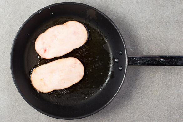 Das Fleisch in einer mittelgroßen Pfanne mit 1EL Olivenöl bei starker Hitze 2–3Min. braten, dann wenden und weitere 1–2Min. braten. Inzwischen die Brötchen auf dem Ofenrost ca. 8Min. knusprig aufbacken.