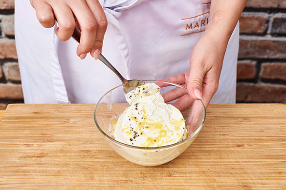 Nun den Bulgur mit der Gabel auflockern und zusammen mit den Kräutern, 1EL Zitronensaft, dem Za'atar-Gewürz sowie 1-2EL Olivenöl vermischen und mit Salz und Pfeffer abschmecken. Die Tomaten unterheben.