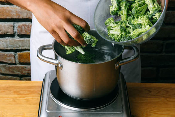 In einem mittelgroßen Topf ausreichend Wasser für den Brokkoli zum Kochen bringen. Den harten Brokkolistrunk abschneiden und den Brokkoli in kleine Röschen zerteilen. Sobald das Wasser kocht, den Brokkoli hineingeben und ca. 5–6Min. bissfest kochen, in ein Sieb abgießen und gut abtropfen lassen.